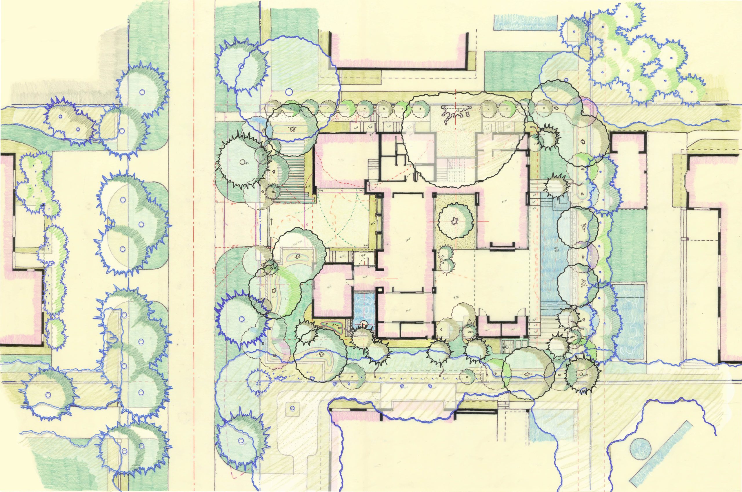 As Landscape Architects, our vision for this project is to design a garden that seamlessly extends the living spaces, effortlessly flowing into the negative spaces with the right scale and proportions. Our goal is to create a family-centered environment that makes full use of the various outdoor spaces. These outdoor spaces were designed to be pedestrian friendly, inviting, and scaled for comfort, fostering a natural sense of human connection. Sustainability will guide our planting design, emphasizing low-maintenance practices that are both environmentally conscious and enduring.