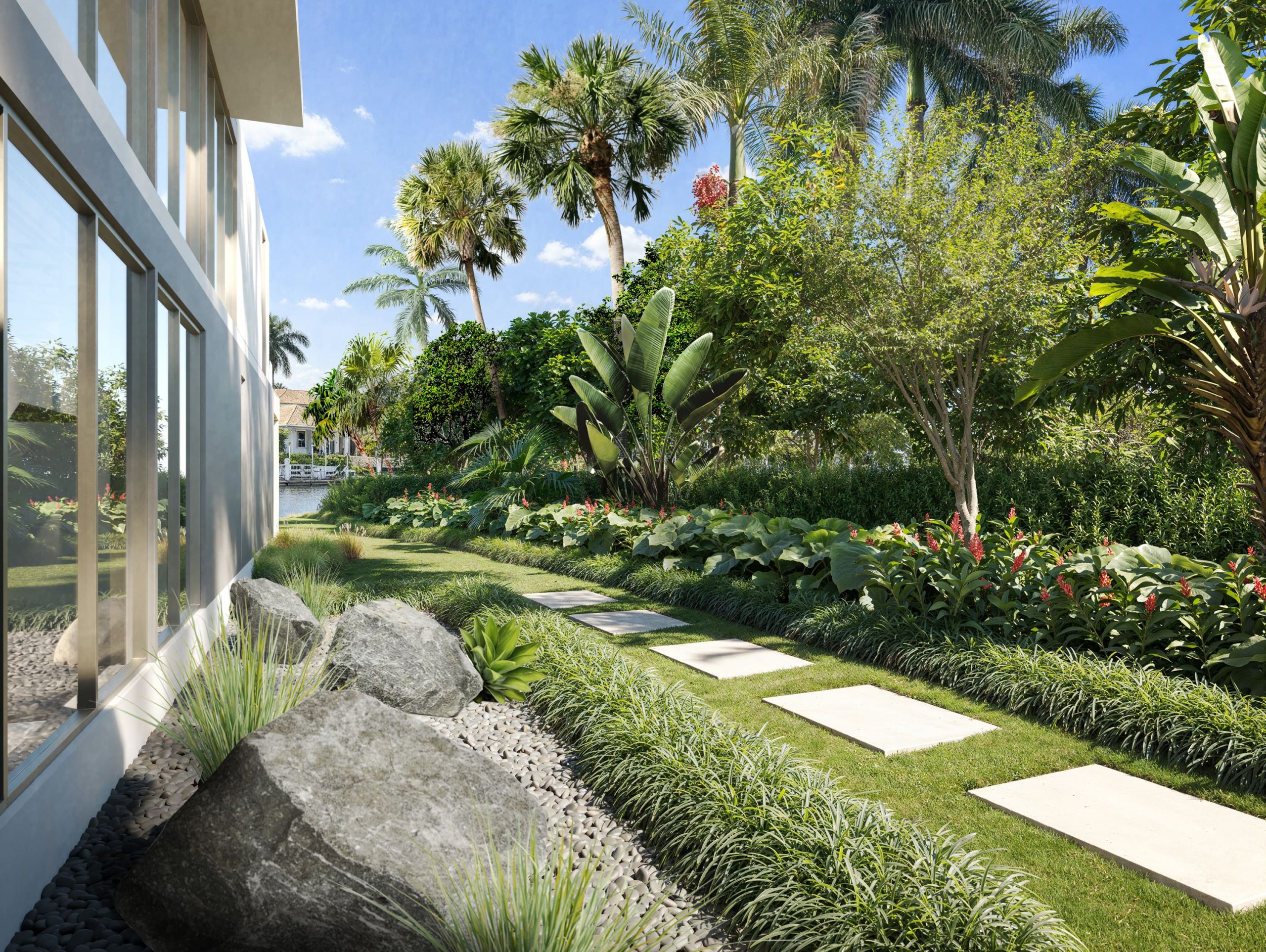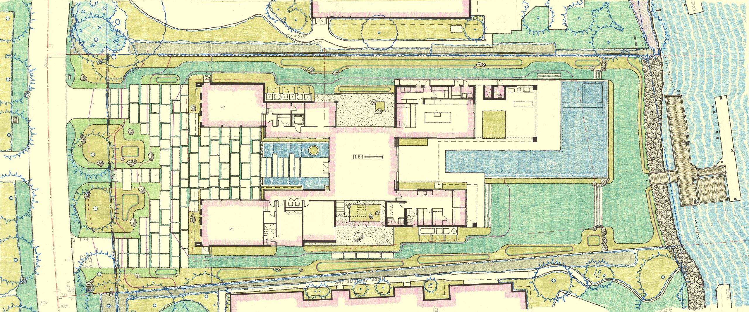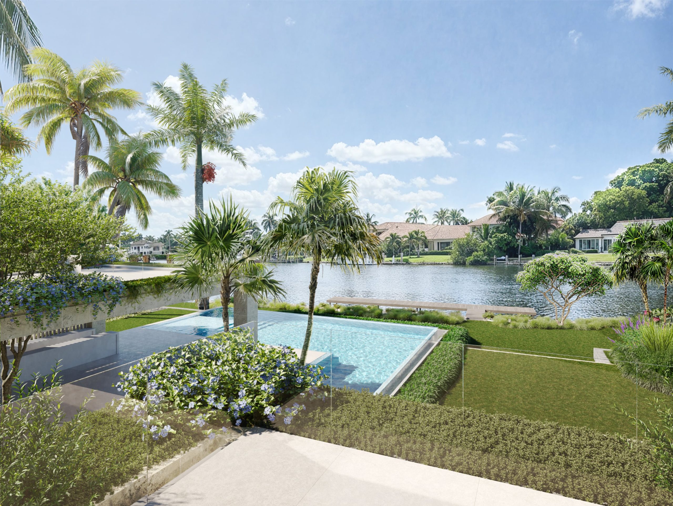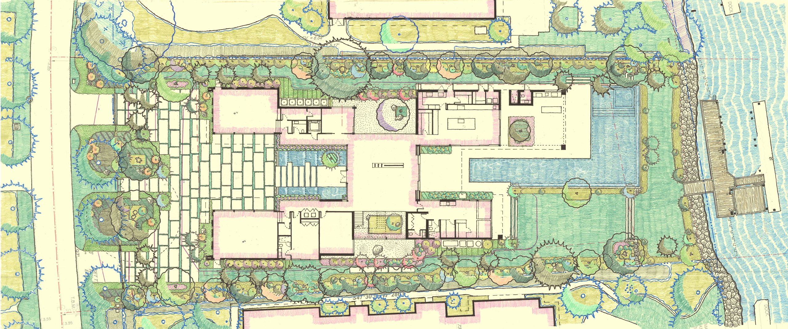 Skyglass was conceived as an outdoor environment that seamlessly complements the family’s lifestyle, interests, and hobbies. A dramatic arrival sequence, safe and engaging play areas for the children, gardens that extend the living experience beyond the walls of the home, and preservation of important sight lines all come together to create a setting that is both functional and inspiring.