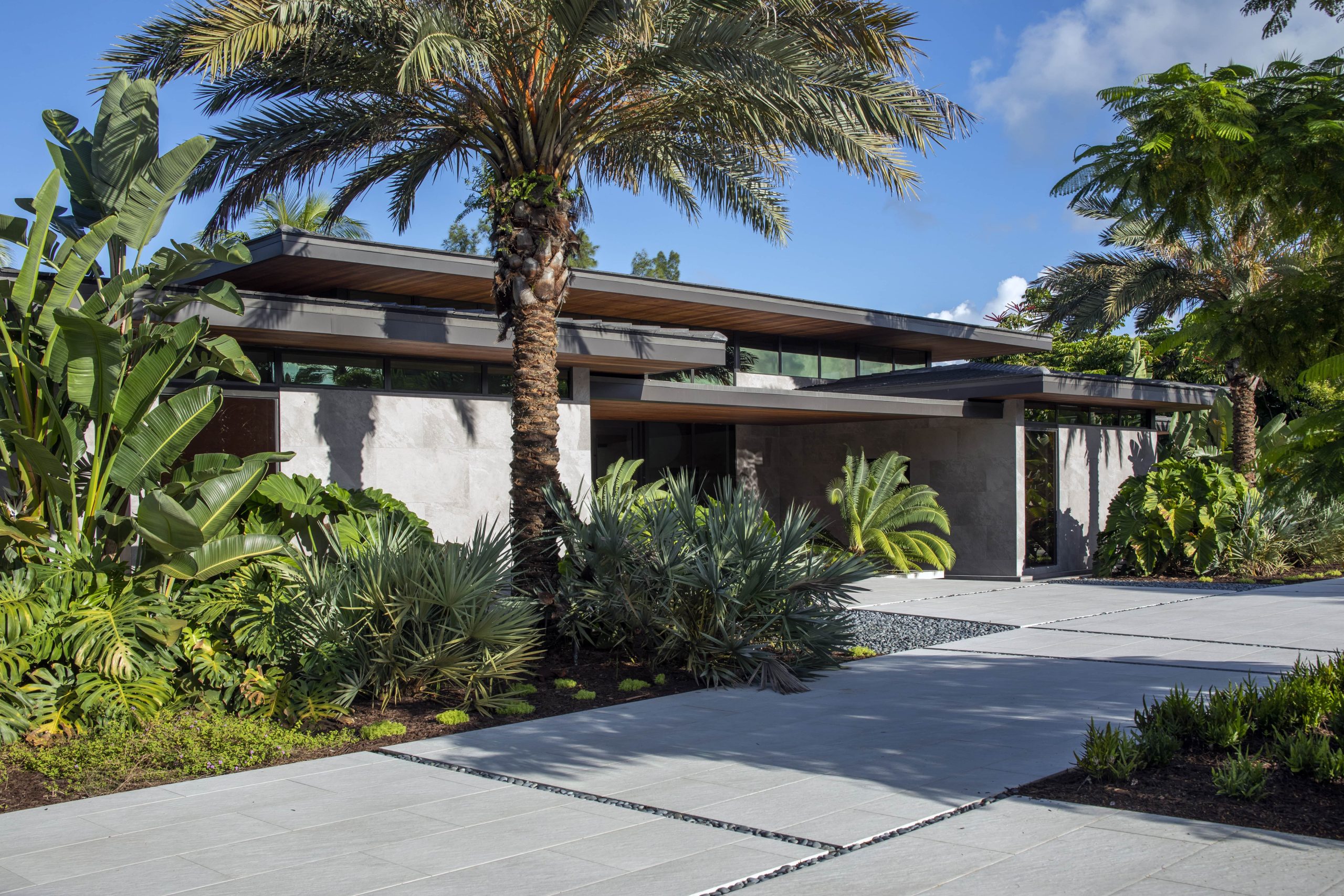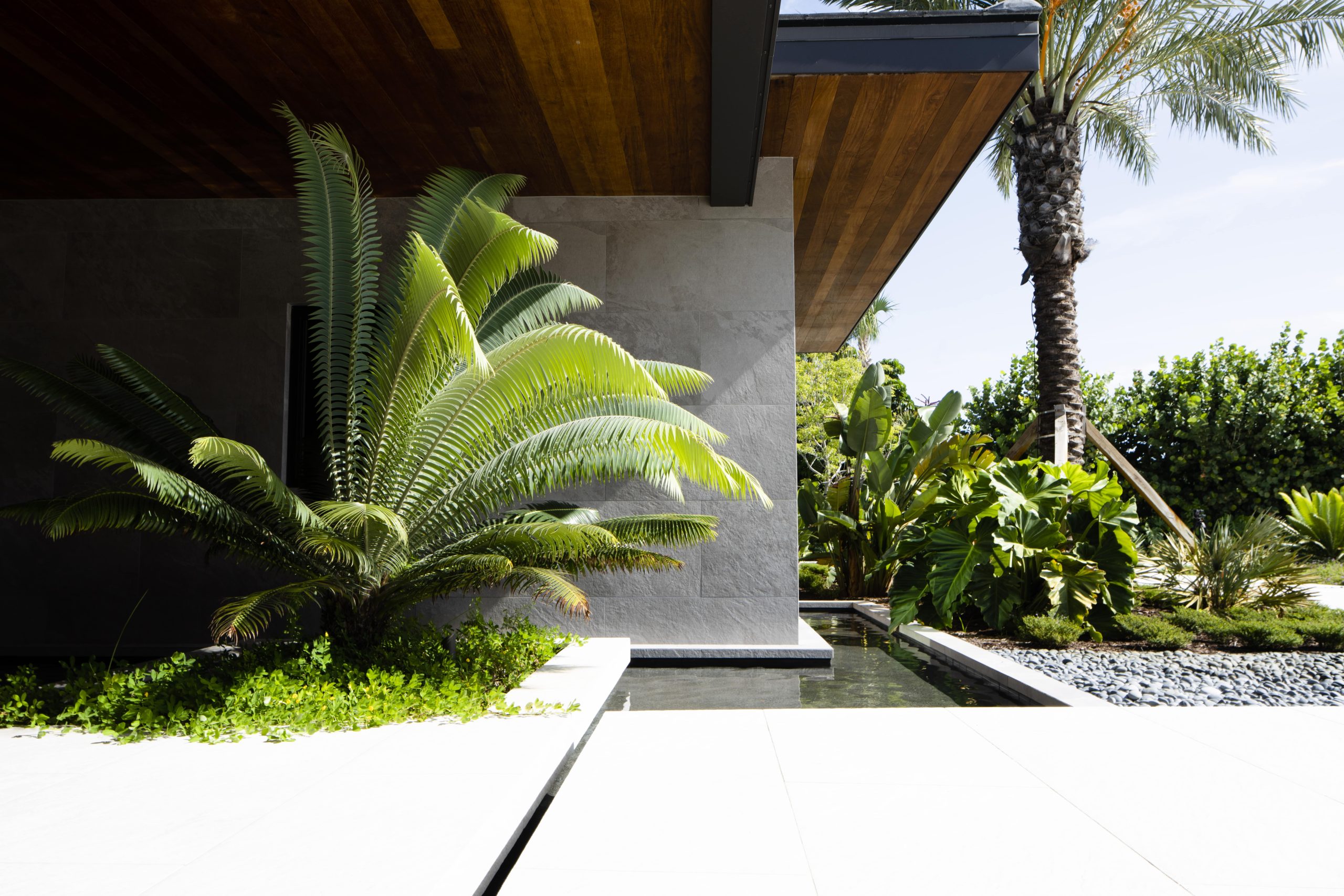 The renovation of this contemporary residence and garden is deeply inspired by its subtropical context, utilizing horizontal lines to ground the home and connect its occupants to nature. When considering how to make the most impactful intervention, the design team focused mainly on horizontal roof planes, subtropical landscaping and an abundance of clerestory windows that would all contribute to the home’s integration with its site. In contrast to the tropes of a Palm Beach traditional vernacular, this home seeks to re-establish itself within nature as a place for a young family.